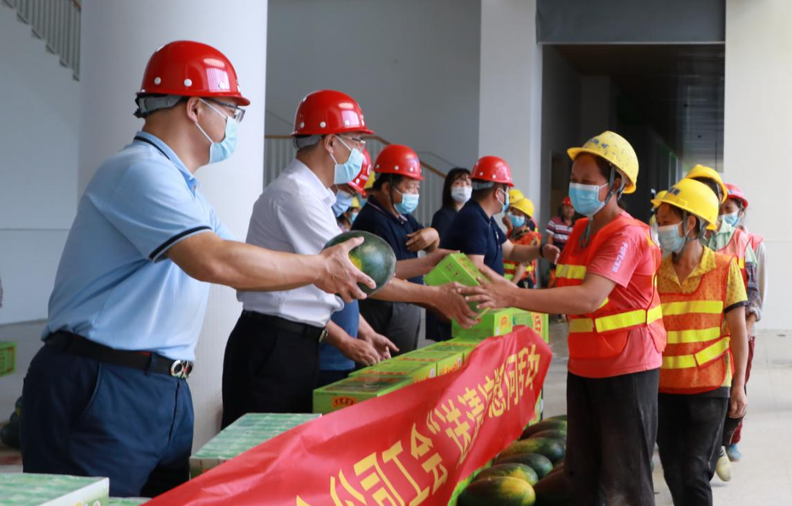 在項目現(xiàn)場,慰問組一行與項目負(fù)責(zé)人深入交流,詳細(xì)了解一線職工工生產(chǎn)生活情況,現(xiàn)場查看施工安全生產(chǎn)、勞動保護(hù)和防暑降溫措施,并送上清涼飲料等慰問品。