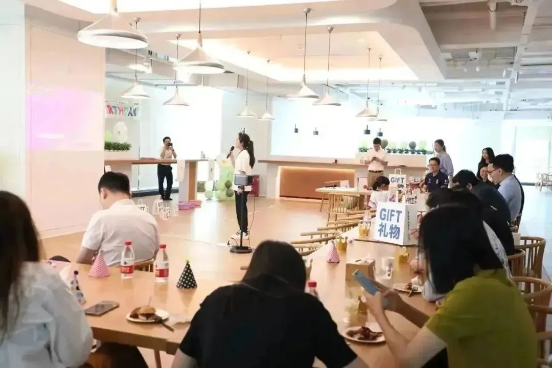 生日會上,暖場歌曲表演、聽聲辨人等游戲節(jié)目輪番上演。在愉悅的氛圍感染下,大家打開了話匣子,暫時卸下了工作的疲憊與壓力,現(xiàn)場其樂融融,一派歡聲笑語。生日會的尾聲,在主持人的邀請下,所有壽星一起走到臺前切蛋糕,在舒緩生日快樂歌的圍繞下,許下自己美好的生日愿望。