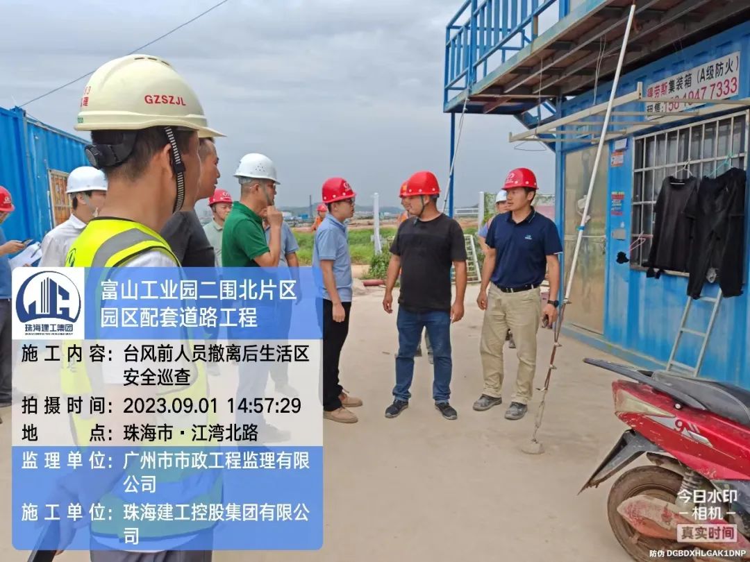 截止目前,大橫琴置業(yè)公司對在建項目內(nèi)部的排洪渠、項目內(nèi)部積水、塔吊等大型機械和腳手架、斗門項目臨海等三防風(fēng)險點已完成全面排查整改:項目內(nèi)部排洪渠已完成清淤防止渠道堵塞,各基坑臨邊已設(shè)置隔離警示設(shè)施,外部腳手架已加強連接,臨時用電已全部切斷電源,大型機械設(shè)備已按照規(guī)范放置、臨時建筑已設(shè)置地錨防風(fēng)繩。