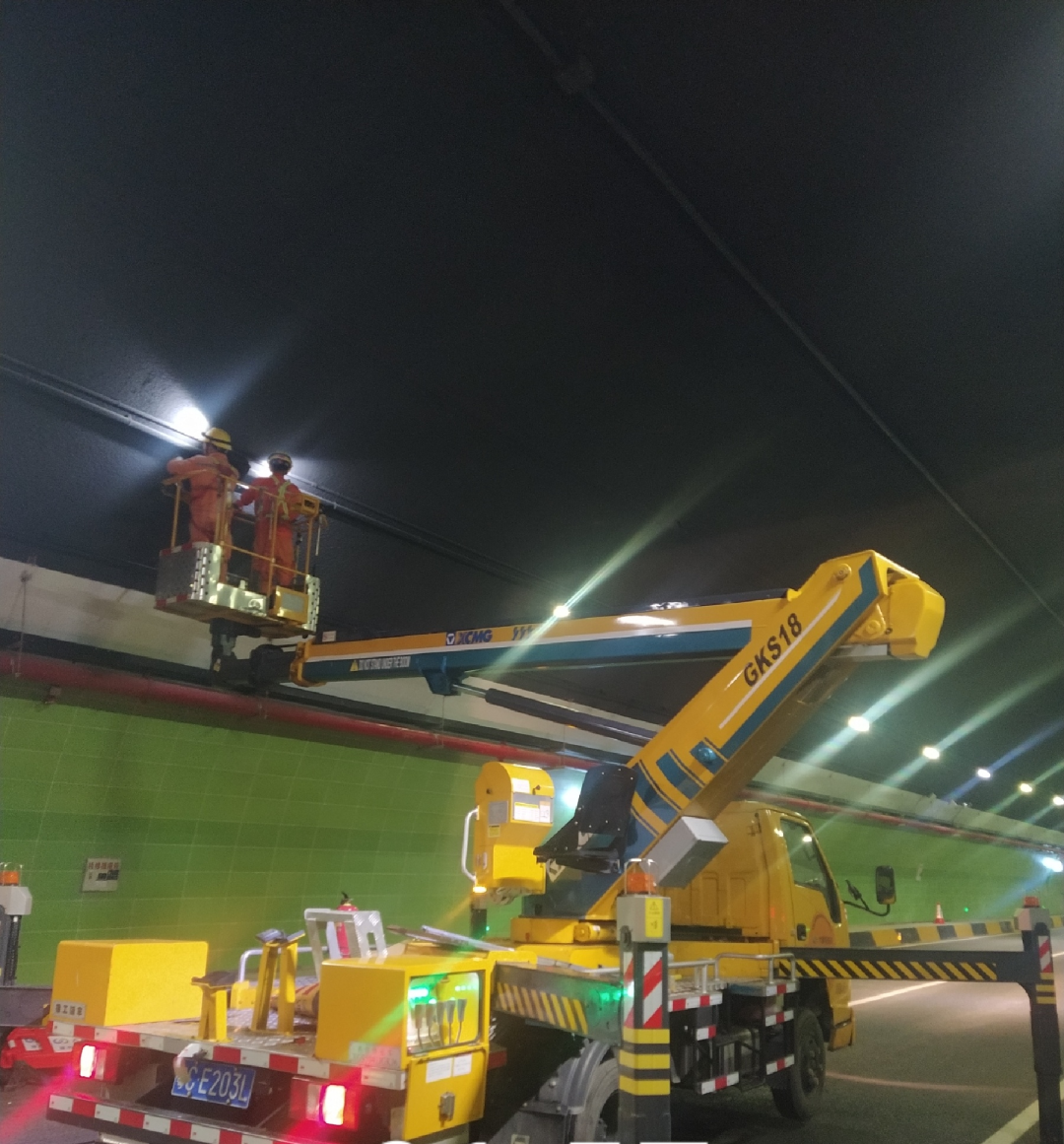 利用登高作業(yè)車到達(dá)隧道頂部進(jìn)行清潔維保