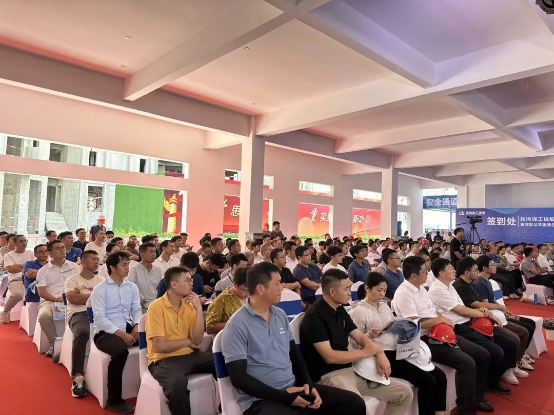 珠海市住房和城鄉(xiāng)建設(shè)局四級(jí)調(diào)研員孫飛,金灣區(qū)住房和城鄉(xiāng)建設(shè)局黨組成員梁德華,金灣區(qū)市場(chǎng)監(jiān)督管理局一級(jí)主任科員殷電軍,金灣區(qū)建設(shè)工程質(zhì)量監(jiān)測(cè)站站長(zhǎng)王武,金灣區(qū)住房保障中心主任劉柳亮,珠海市建筑業(yè)協(xié)會(huì)王愛志,珠海市聯(lián)港城建公司副總經(jīng)理曹云,珠海市建筑設(shè)計(jì)院監(jiān)理部總經(jīng)理宋祖興,珠海建工集團(tuán)黨委書記、董事長(zhǎng)黃如華等單位及領(lǐng)導(dǎo)出席活動(dòng)儀式,市、區(qū)建筑領(lǐng)域200余人參加觀摩學(xué)習(xí)。會(huì)議由珠海建工集團(tuán)黨委委員、總經(jīng)理助理李純剛主持。