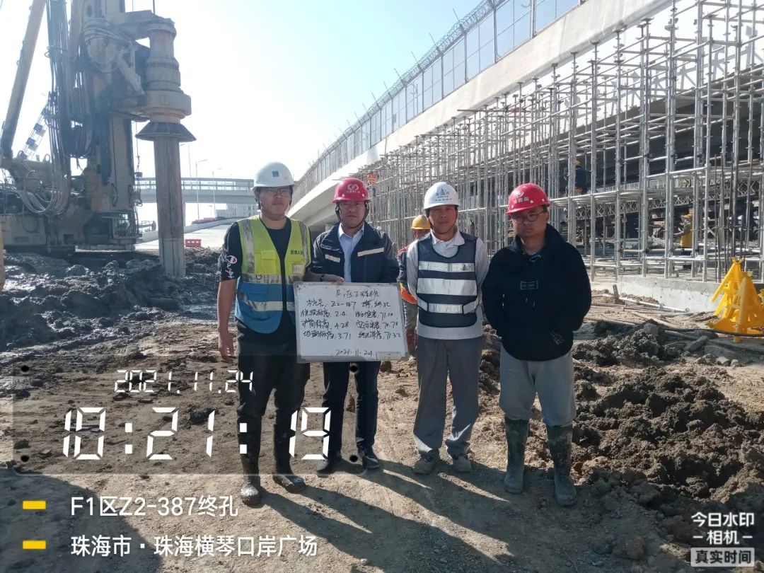 九是質(zhì)量安全。成立質(zhì)量管理小組,制定質(zhì)量管理措施,按照公司安全管理規(guī)定,落實(shí)責(zé)任到人、層層把關(guān),定期開展安全檢查,兼顧突擊檢查,避免安全隱患。如對(duì)項(xiàng)目樁基礎(chǔ)等重要工序,結(jié)合工程工序相關(guān)查驗(yàn)標(biāo)準(zhǔn),全過(guò)程記錄每條樁的超前鉆、鋼護(hù)筒、樁孔重要參數(shù),并對(duì)不同數(shù)據(jù)互相比對(duì),確保每道工序按圖施工。2021年10月起,指揮部成員輪流值班,跟進(jìn)每一條樁基終孔驗(yàn)收工作,并拍照留底。據(jù)統(tǒng)計(jì),驗(yàn)樁共安排輪值共113次。