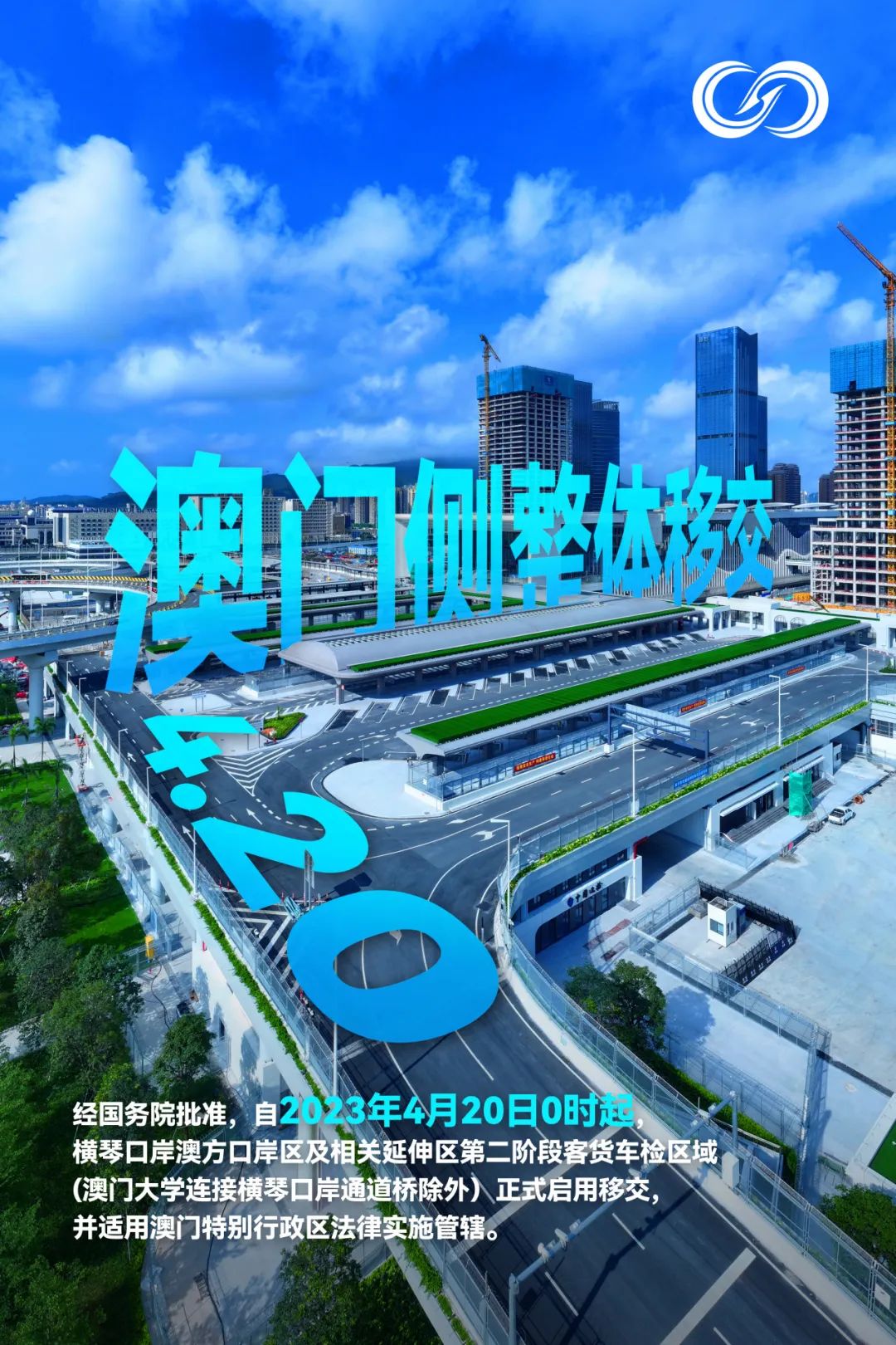 經(jīng)國(guó)務(wù)院批準(zhǔn),自2023年4月20日0時(shí)起,橫琴口岸澳方口岸區(qū)及相關(guān)延伸區(qū)第二階段客貨車檢區(qū)域(澳門大學(xué)連接橫琴口岸通道橋除外)正式啟用移交,并適用澳門特別行政區(qū)法律實(shí)施管轄。