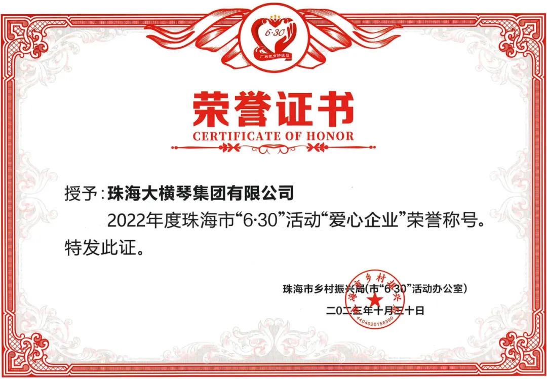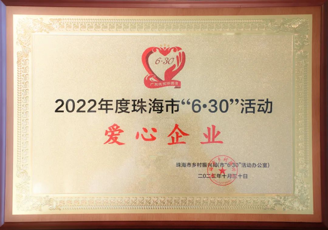 為深入貫徹黨的二十大和中央農(nóng)村工作會議精神,落實市委、市政府關(guān)于統(tǒng)籌實施鄉(xiāng)村振興戰(zhàn)略和“百縣千鎮(zhèn)萬村高質(zhì)量發(fā)展工程”工作部署,匯聚更多社會力量參與“6·30”活動,鞏固脫貧成果、助力鄉(xiāng)村振興、促進共同富裕,根據(jù)《中共珠海市委農(nóng)村工作領(lǐng)導小組〈關(guān)于印發(fā)珠海市2023年“6·30”助力鄉(xiāng)村振興活動工作方案〉的通知》(珠委農(nóng)組〔2023〕6號)精神,市鄉(xiāng)村振興局(市6·30活動辦)開展2022年度珠海市“6·30”活動“愛心企業(yè)、愛心團體、愛心個人”評選活動,向社會傳遞珠海人民樂善好施的精神品德,激發(fā)社會各界共襄善舉、助力鄉(xiāng)村振興。經(jīng)評審,珠海大橫琴集團有限公司(以下簡稱大橫琴集團)被授予2022年度珠海市“6·30”活動“愛心企業(yè)”榮譽稱號。