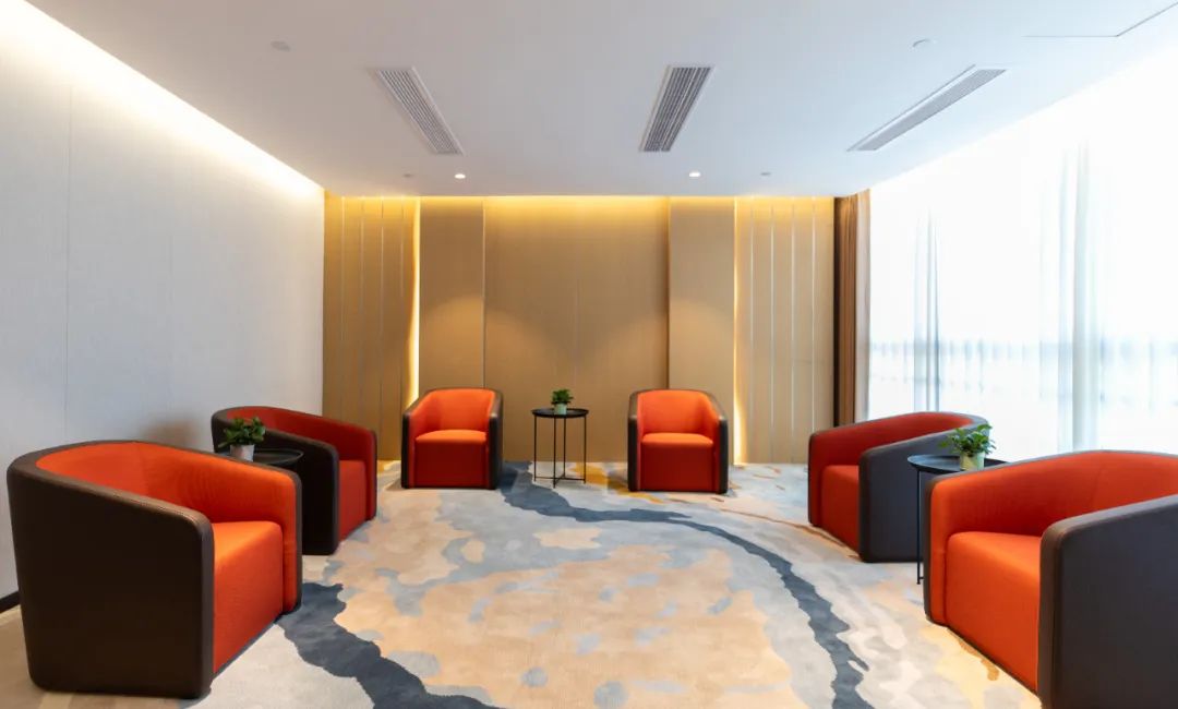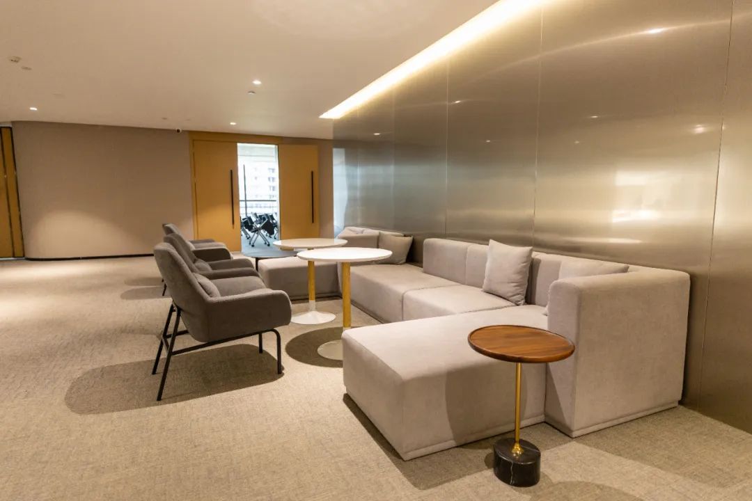 沒有鮮艷的色調(diào),摒棄傳統(tǒng)辦公空間所青睞的金碧輝煌風(fēng),改用棕色座椅搭配著灰白色地毯,咖色沙發(fā)搭配棕紅色背景墻,慢慢過渡的色彩讓整個(gè)空間更加柔和、干凈和高雅,無(wú)論是辦公還是社交,都能給人提供一個(gè)有溫度的空間,讓科創(chuàng)er的工作和生活連結(jié)地更加融洽。