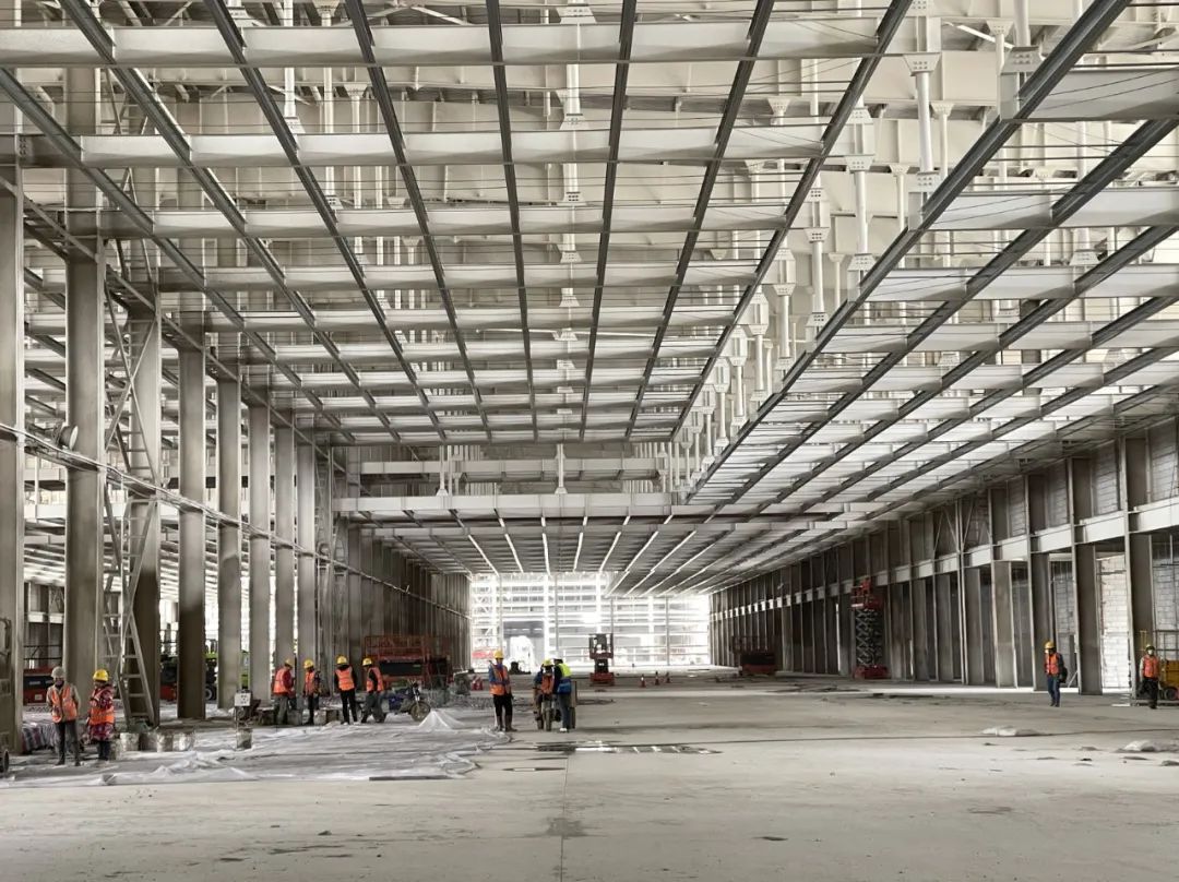 自從項(xiàng)目啟動(dòng)后,所有參建人員搶時(shí)間、趕進(jìn)度,15天完成4萬余平方米的場(chǎng)地軟基處理,22天達(dá)成4萬余平方米的底板及承臺(tái)施工,30天搞好2400余根工程樁的施工與檢測(cè),45天結(jié)束7400余噸的鋼結(jié)構(gòu)主體安裝施工,并克服兩次臺(tái)風(fēng)、三次暴雨的惡劣天氣影響,僅用時(shí)97天,建成了11.7萬平方米廠房,再次刷新“大橫琴速度”!