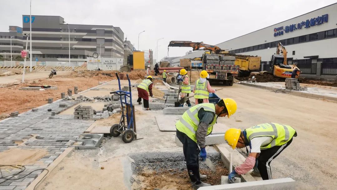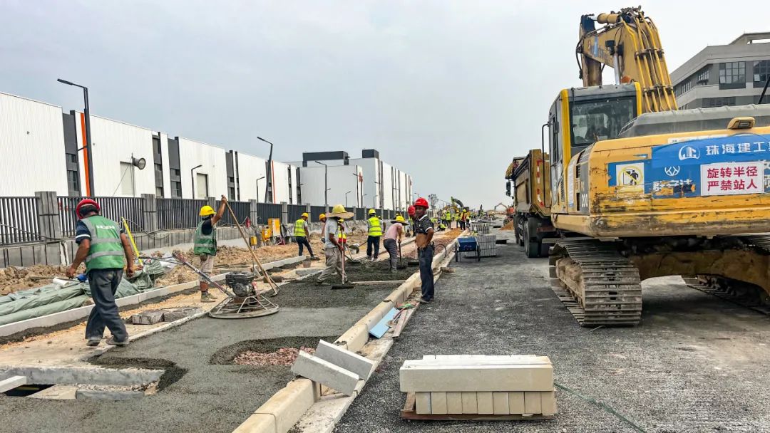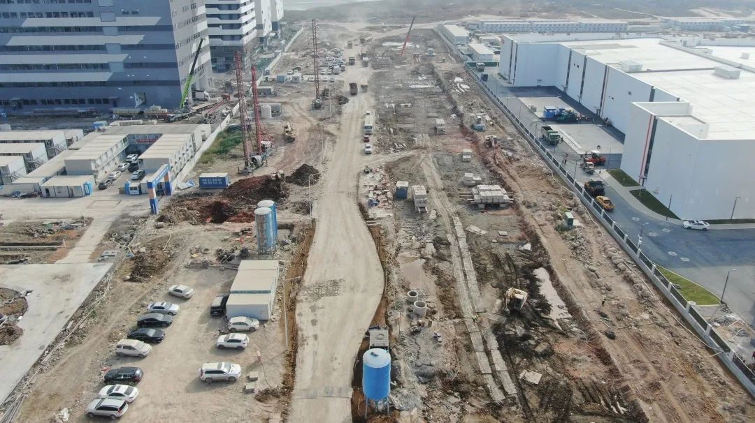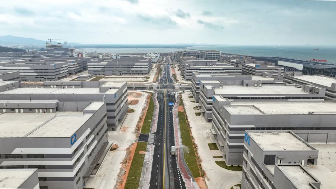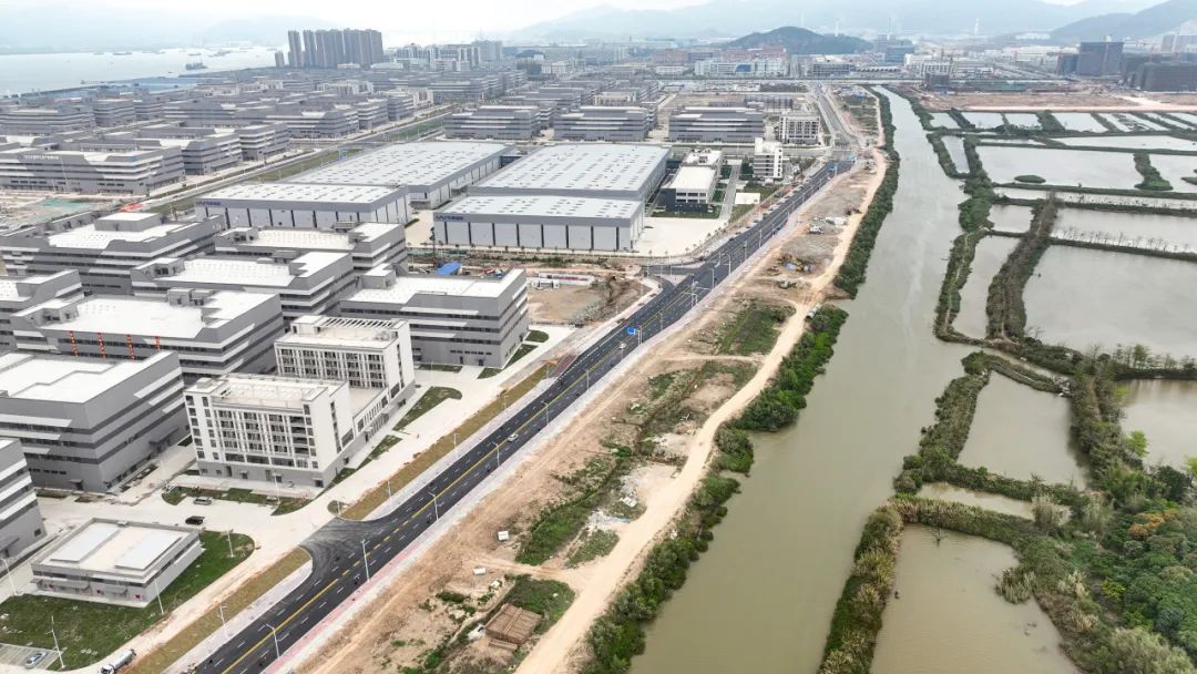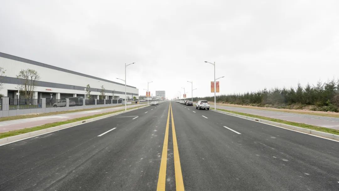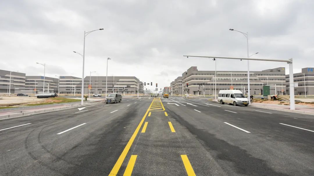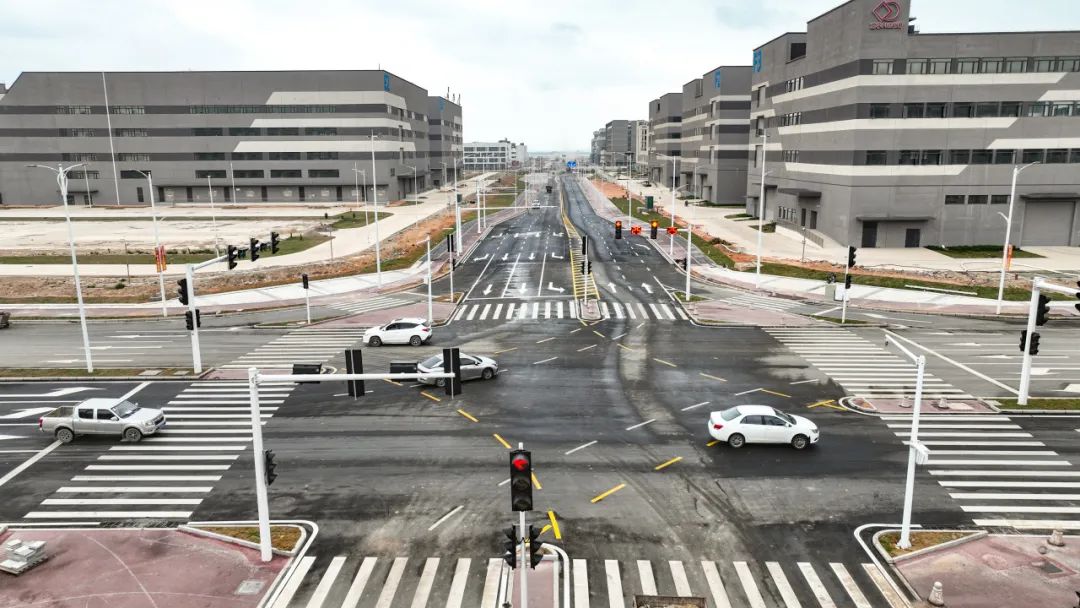 2024年1月30日,雷蛛大道、欣港路、馬山北路等4條主路和其他路段約6km的道路已按期完成,二圍北片區(qū)初步形成“一大環(huán)、兩小環(huán)”交通網(wǎng)絡,基本滿足各廠區(qū)出入需求。