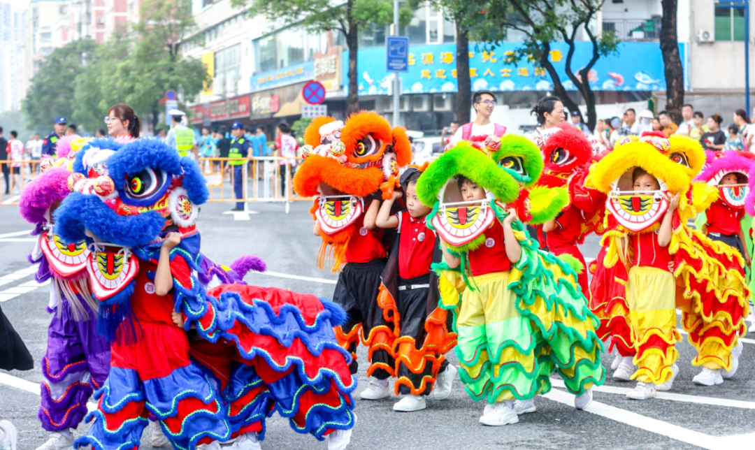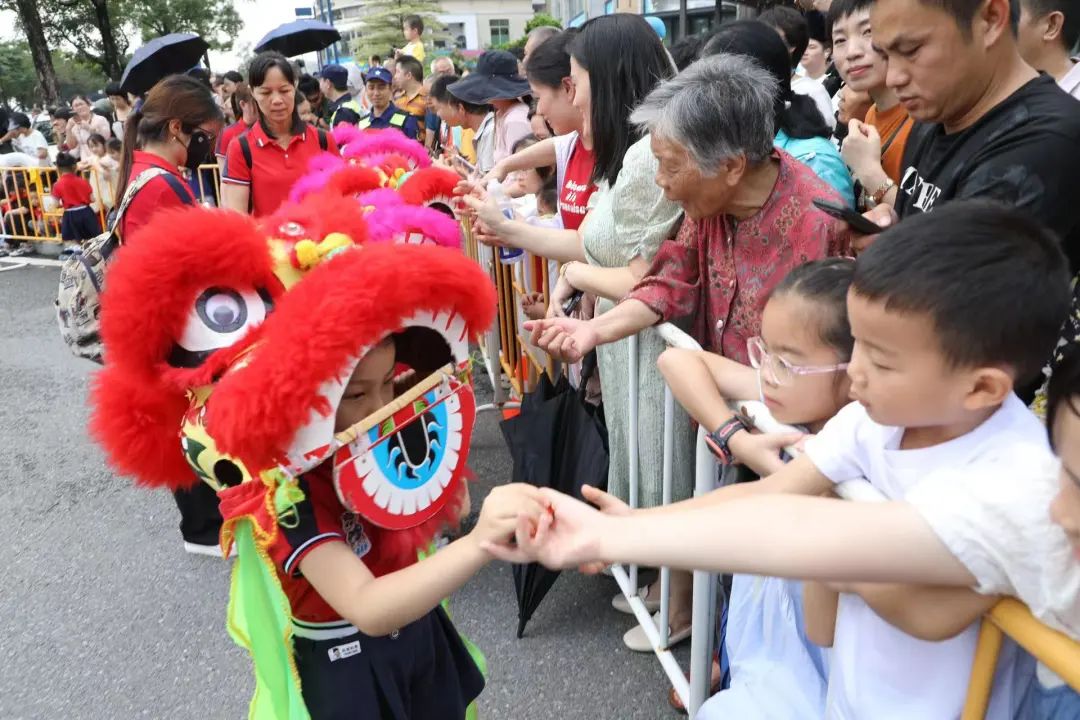 《群獅共舞》《輪滑龍》《賽龍奪錦》《幼兒萌獅》等斗門傳統(tǒng)民俗文化,以及管樂團(tuán)合奏《迎賓曲》《金龍奪標(biāo)》、舞蹈《龍騰九洲》、川劇變臉等富有濃厚非遺特色的文體節(jié)目在岸上的舞臺(tái)穿插上演。