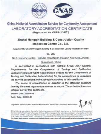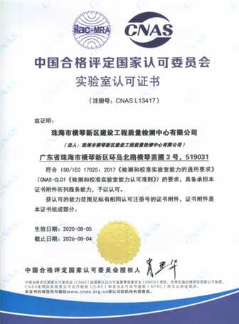 2024年5月25日至26日,由中國合格評定國家認(rèn)可委員會(CNAS)委派的評審專家組一行四人,對珠海大橫琴集團(tuán)有限公司(以下簡稱大橫琴集團(tuán))下屬企業(yè)珠海市橫琴新區(qū)建設(shè)工程質(zhì)量檢測中心有限公司(以下簡稱橫琴檢測中心)開展CNAS實(shí)驗(yàn)室認(rèn)可復(fù)評審。