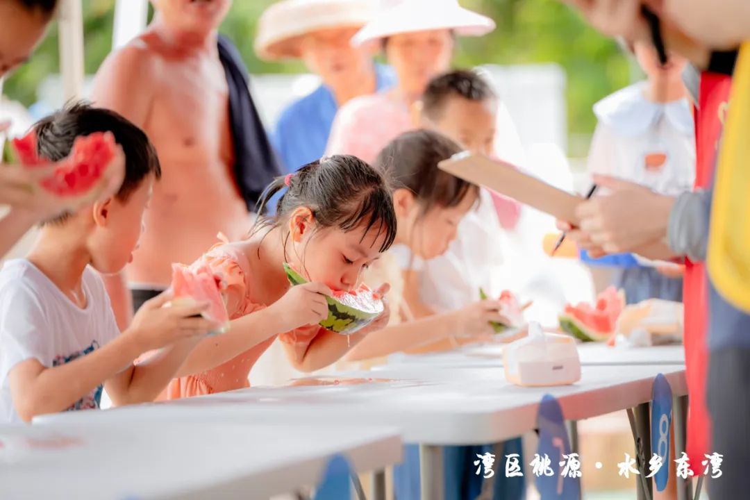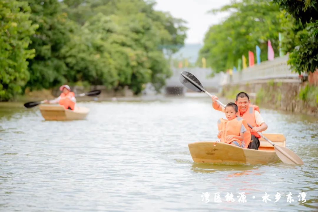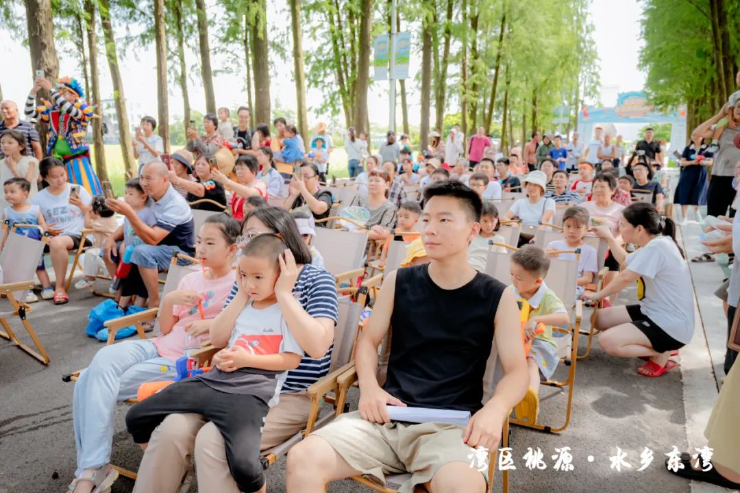 隨后,現(xiàn)場的水車伴著歡笑聲噴灑出陣陣水霧,也標志著此次“東灣夏日清涼大作戰(zhàn)”活動正式開始。在接下來的兩天時間里,活動將充分結(jié)合東灣村民俗文化和稻田、河涌等良好的生態(tài)環(huán)境基底,通過農(nóng)艇競渡、趣味戲水、非遺剪影、東灣美食、清涼集市等元素,將傳統(tǒng)鄉(xiāng)村元素與現(xiàn)代競技、活動相融合,打造一系列清涼刺激的互動體驗?;顒有问截S富多樣,既有團隊合作的競技項目,也有輕松愉快的趣味游戲,還有特色清涼集市供游客休閑購物,可謂是“面面俱到”。