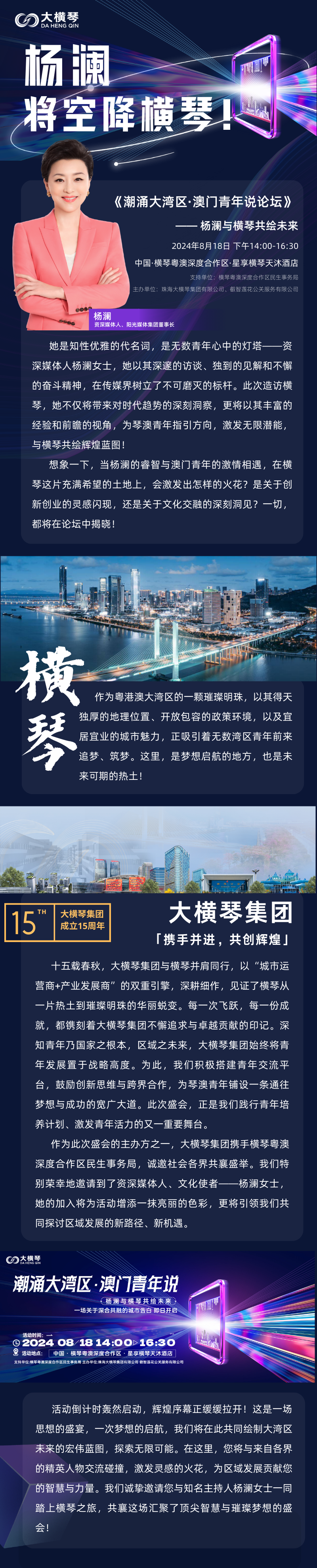 8月18日楊瀾將空降橫琴,共繪大灣區(qū)璀璨未來(lái)!