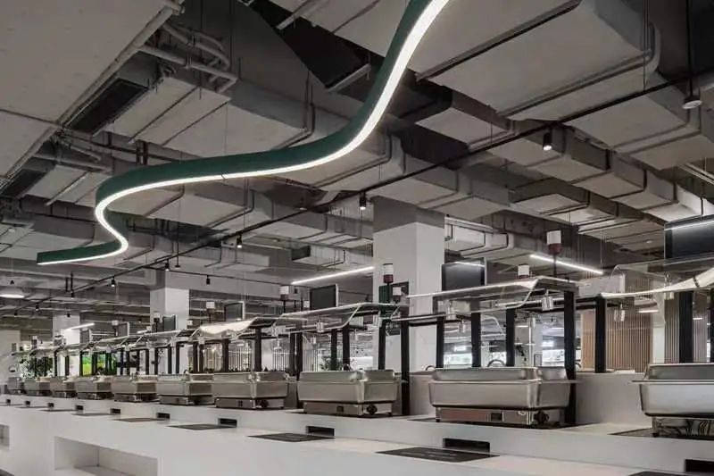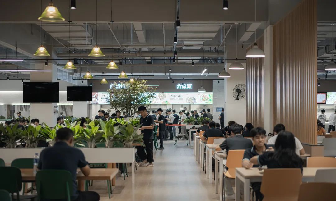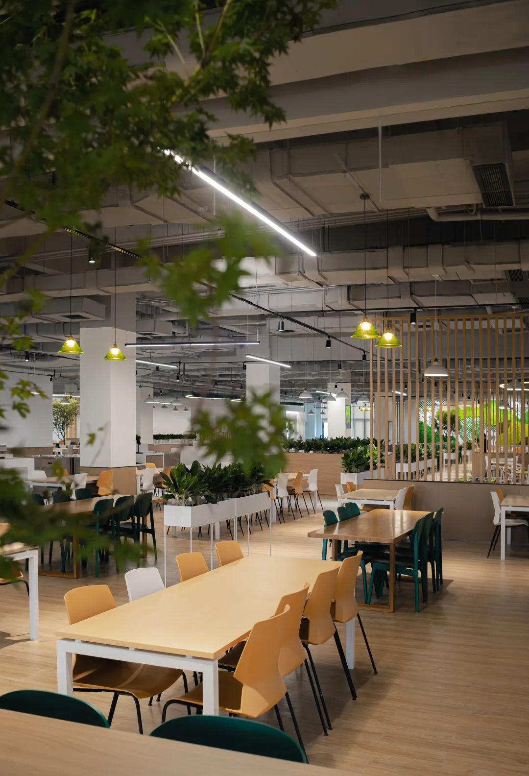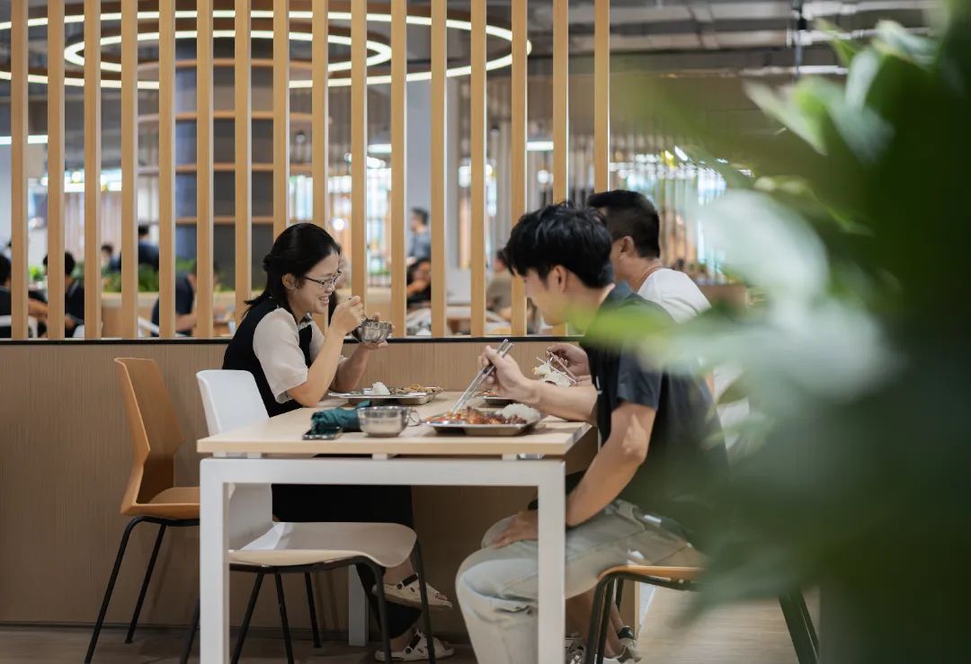 食堂在設(shè)計(jì)時(shí),就充分考慮這還是一個(gè)社交空間,空間上分割成滿足不同社交需求的空間,靈動(dòng)多元。
