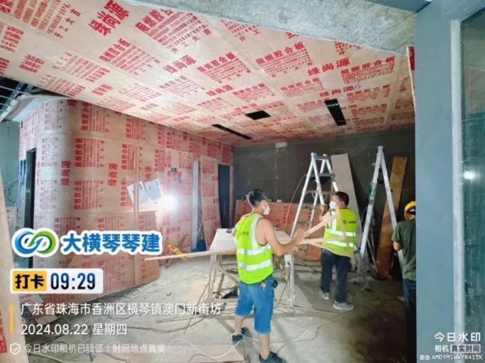 2024年8月25日,民生驛站項目正式動工。在不到兩個月的施工期內,為了確保施工進度,大橫琴琴建公司組織骨干力量在項目現場日夜駐守,緊盯每一道工序的完成質量,確保每一塊瓷磚的拼接,每一扇門窗的安裝,都必須符合高標準。