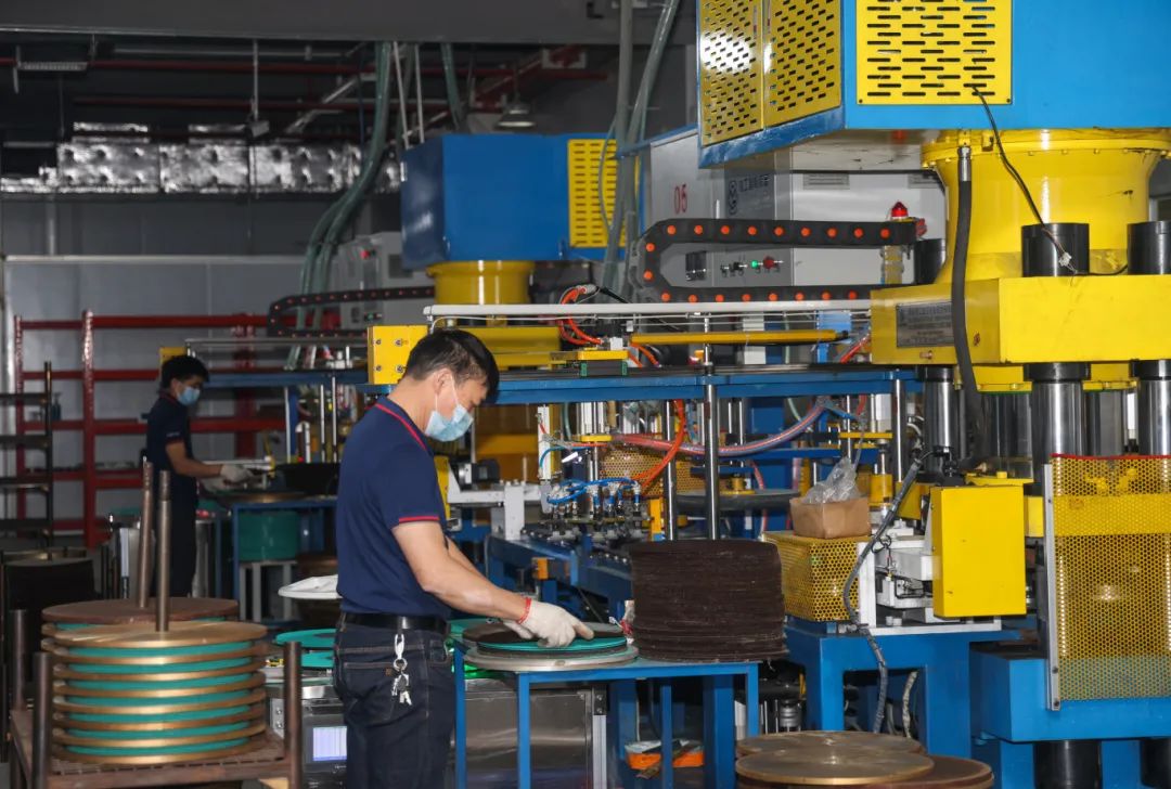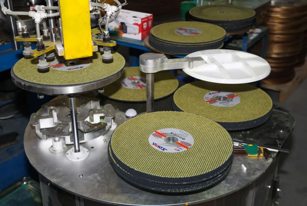 步入車間,智能化設備高效運轉,厚度1至6毫米的砂輪經(jīng)過精密加工后整齊排列,即將發(fā)往全球市場。