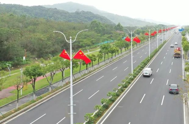 為助力營造濃厚的節(jié)日氛圍,大橫琴城資在橫琴大橋、環(huán)島東路、天羽道、港澳大道、環(huán)島北路等重點道路沿線懸掛1560面國旗。