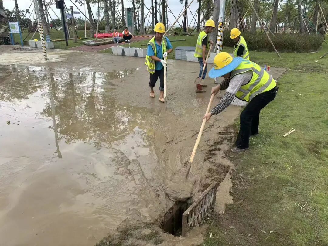 珠光集團(tuán)組織500多人次投入到橫琴星樂(lè)度·露營(yíng)小鎮(zhèn)、花海長(zhǎng)廊、濕地公園、星享·天沐酒店、南油大酒店、人才公寓等旗下文旅項(xiàng)目的復(fù)工復(fù)產(chǎn)工作,目前已高效完成園區(qū)道路清障任務(wù),全面恢復(fù)所有電力系統(tǒng),修繕園區(qū)導(dǎo)視牌、(高空)廣告牌,對(duì)帳篷頂部損毀區(qū)域進(jìn)行安全圍蔽;基本完成人才公寓受損住戶的室內(nèi)設(shè)施維修工作,有序安置受影響的住戶;加快完成花海長(zhǎng)廊3、5號(hào)驛站廣場(chǎng)因海水倒灌造成的淤泥與垃圾清運(yùn),以及賽艇公園大面積倒伏樹木扶正復(fù)原工作。