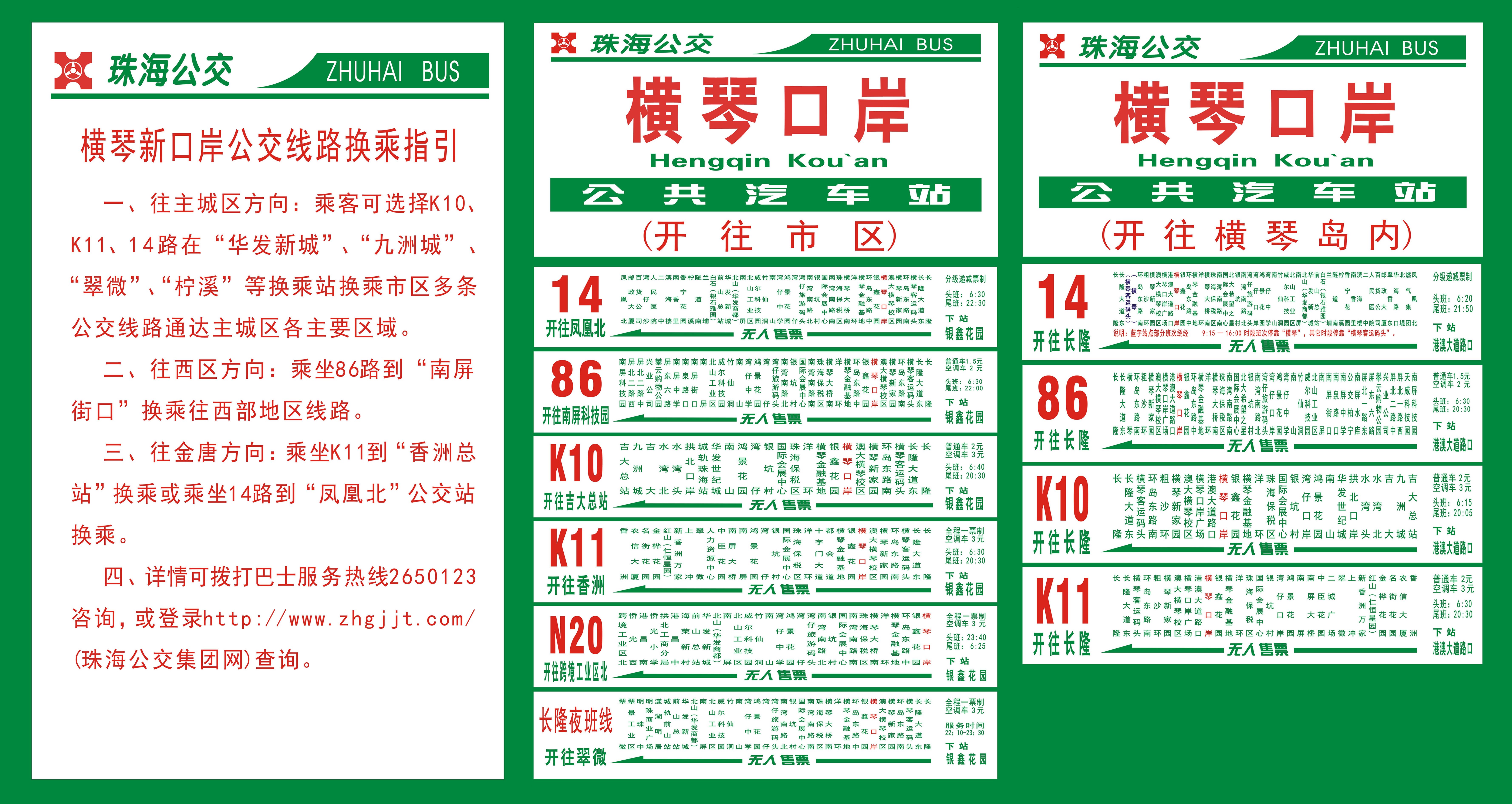 2015年春節(jié)是橫琴口岸實行24小時通關(guān)后迎來的首個新春佳節(jié),為了最大程度地緩解春節(jié)期間橫琴口岸周邊的交通壓力,妥善解決好出入境客流高峰的現(xiàn)實需要,保障出入境旅客的出行需求,市、區(qū)相關(guān)部門采取多項措施對橫琴口岸的交通組織進行了優(yōu)化。其中,開設(shè)了多條公交線路往返于橫琴口岸和市區(qū),并增設(shè)夜班線(詳見附圖一);新臨建和改擴建24小時收費停車場8個,可提供近2000個停車位(詳見附圖二)。同時,提醒出入境旅客文明出行,優(yōu)先選乘公共交通工具,自覺遵守交通規(guī)則。切勿聽信不明人士的指引,以免上當受騙。