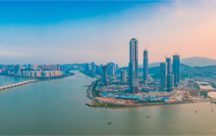 藍色代表橫琴新區(qū)智能島、開放島的定位,綠色代表生態(tài)島、活力島的定位。中間連接的部分勾勒出“橫琴”的首字母H